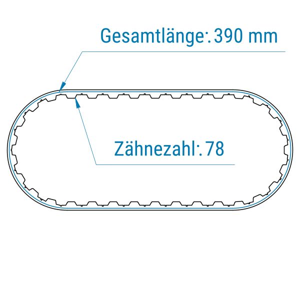 Die Zahnriemen werden endlos gefertigt, sodass sie als geschlossene Längen gemäß den Fertigungsmaßen zur Verfügung stehen. Ein spiralförmig eingelegter Zugstrang stellt eine besonders hohe Kraftübertragung sicher.