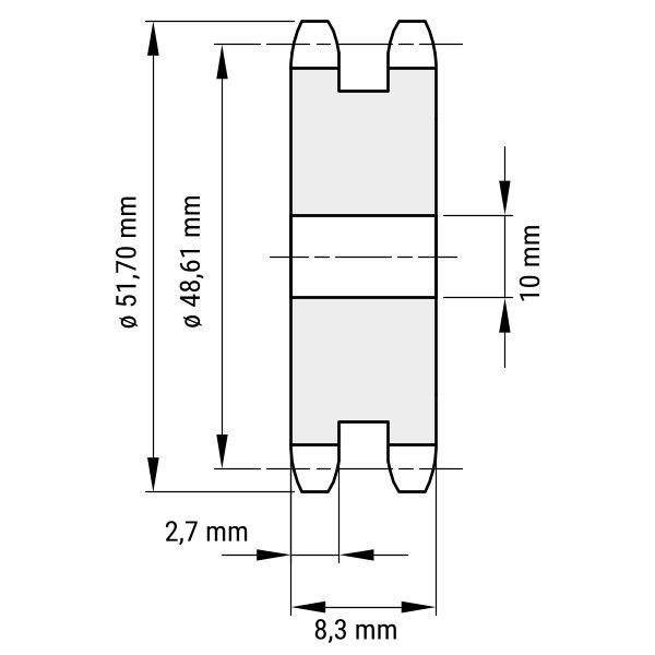 - DIN-Nut: Kettenradscheiben können mit einer DIN-Nut versehen werden. Mithilfe dieser wird die Scheibe auf der Antriebswelle verklemmt.