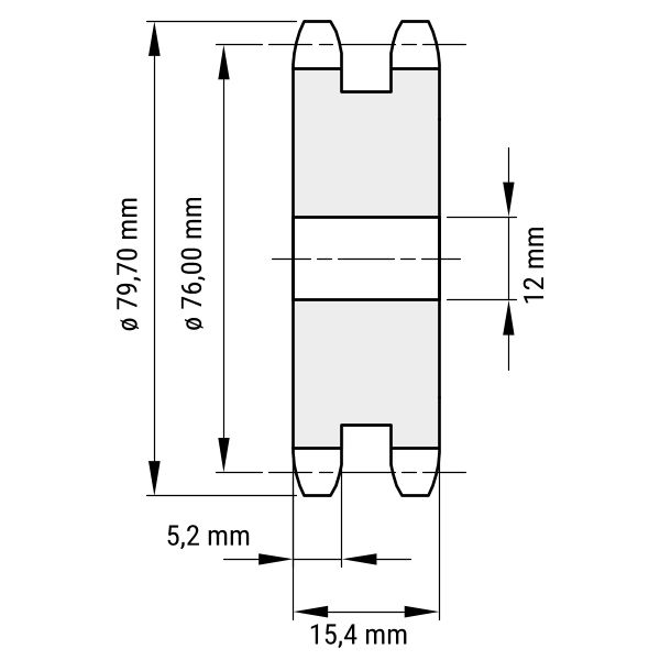 - DIN-Nut: Kettenradscheiben können mit einer DIN-Nut versehen werden. Mithilfe dieser wird die Scheibe auf der Antriebswelle verklemmt.