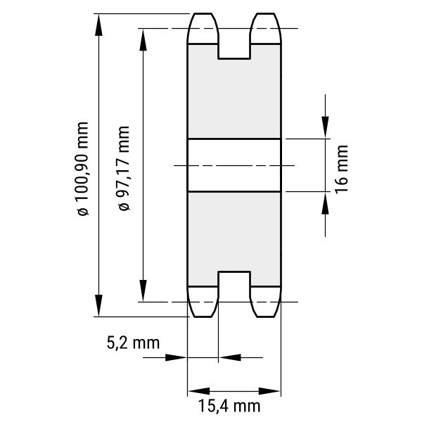 - DIN-Nut: Kettenradscheiben können mit einer DIN-Nut versehen werden. Mithilfe dieser wird die Scheibe auf der Antriebswelle verklemmt.