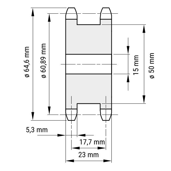 - DIN-Nut: Kettenradscheiben können mit einer DIN-Nut versehen werden. Mithilfe dieser wird die Scheibe auf der Antriebswelle verklemmt.