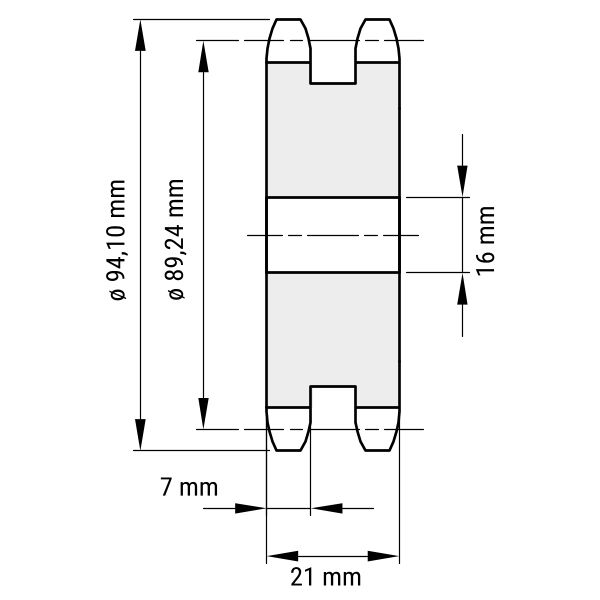 - DIN-Nut: Kettenradscheiben können mit einer DIN-Nut versehen werden. Mithilfe dieser wird die Scheibe auf der Antriebswelle verklemmt.