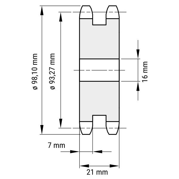 - DIN-Nut: Kettenradscheiben können mit einer DIN-Nut versehen werden. Mithilfe dieser wird die Scheibe auf der Antriebswelle verklemmt.