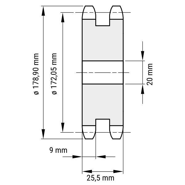 - DIN-Nut: Kettenradscheiben können mit einer DIN-Nut versehen werden. Mithilfe dieser wird die Scheibe auf der Antriebswelle verklemmt.