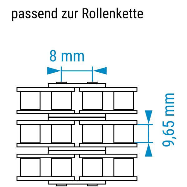 Achten Sie bei Ihrer Bestellung darauf, dass die Profilbezeichnungen von Kette und Kettenradscheibe übereinstimmen.
