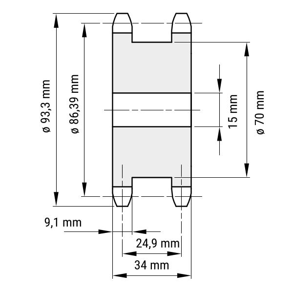- DIN-Nut: Kettenradscheiben können mit einer DIN-Nut versehen werden. Mithilfe dieser wird die Scheibe auf der Antriebswelle verklemmt.