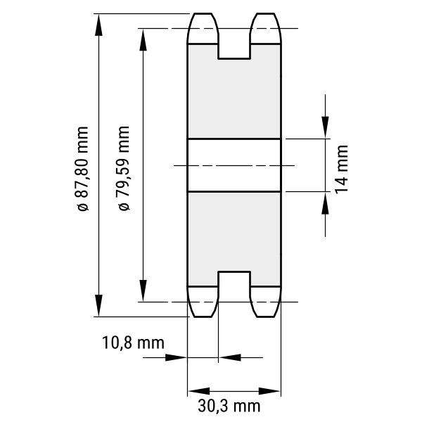 - DIN-Nut: Kettenradscheiben können mit einer DIN-Nut versehen werden. Mithilfe dieser wird die Scheibe auf der Antriebswelle verklemmt.