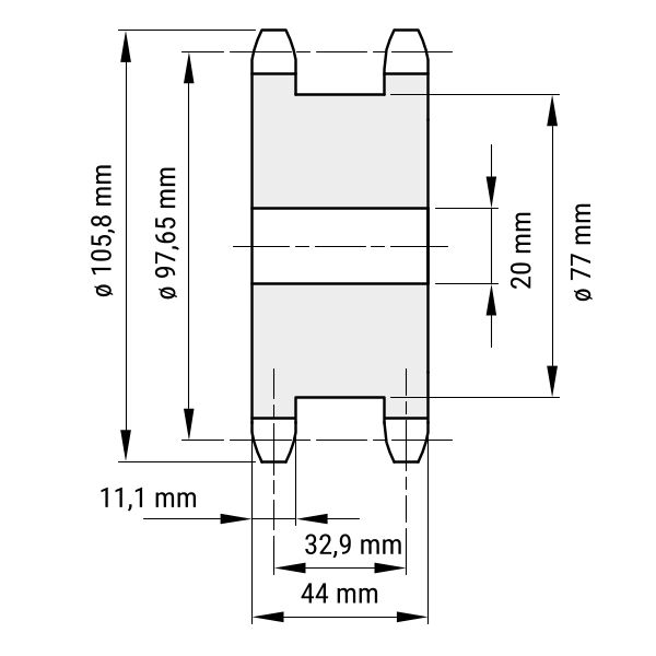 - DIN-Nut: Kettenradscheiben können mit einer DIN-Nut versehen werden. Mithilfe dieser wird die Scheibe auf der Antriebswelle verklemmt.