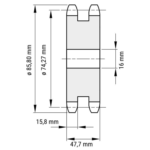 - DIN-Nut: Kettenradscheiben können mit einer DIN-Nut versehen werden. Mithilfe dieser wird die Scheibe auf der Antriebswelle verklemmt.
