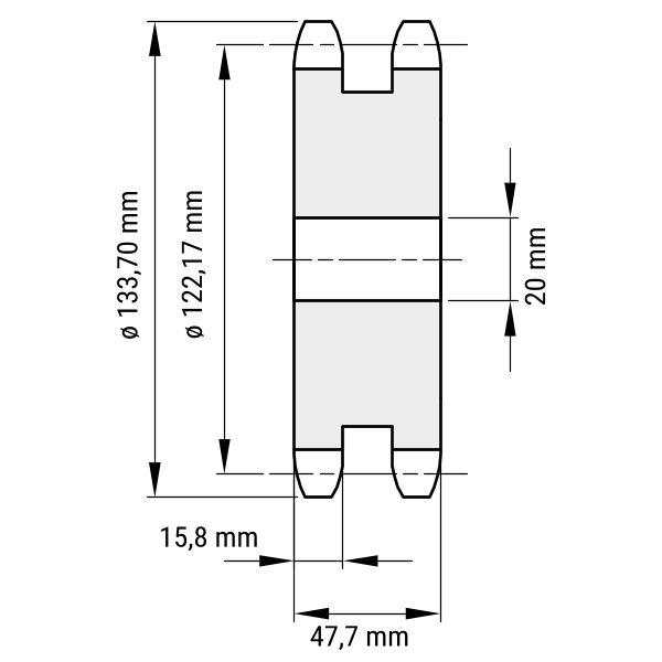- DIN-Nut: Kettenradscheiben können mit einer DIN-Nut versehen werden. Mithilfe dieser wird die Scheibe auf der Antriebswelle verklemmt.
