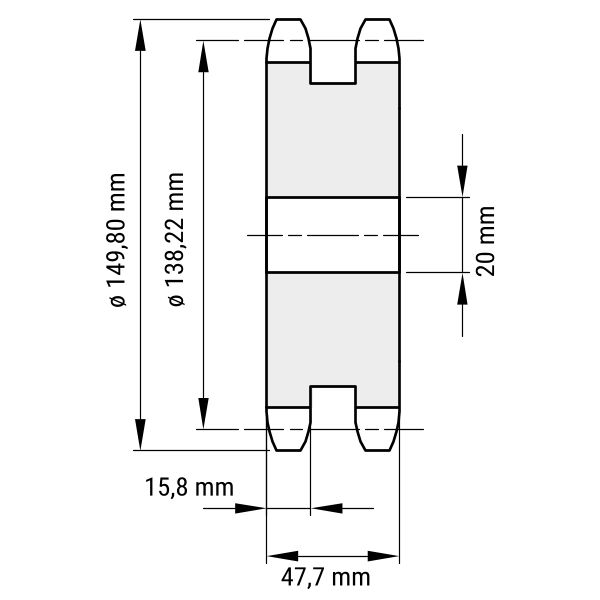 - DIN-Nut: Kettenradscheiben können mit einer DIN-Nut versehen werden. Mithilfe dieser wird die Scheibe auf der Antriebswelle verklemmt.