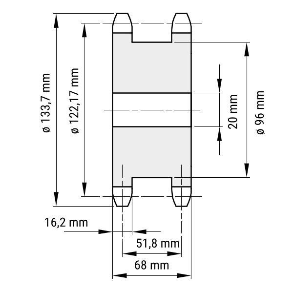 - DIN-Nut: Kettenradscheiben können mit einer DIN-Nut versehen werden. Mithilfe dieser wird die Scheibe auf der Antriebswelle verklemmt.