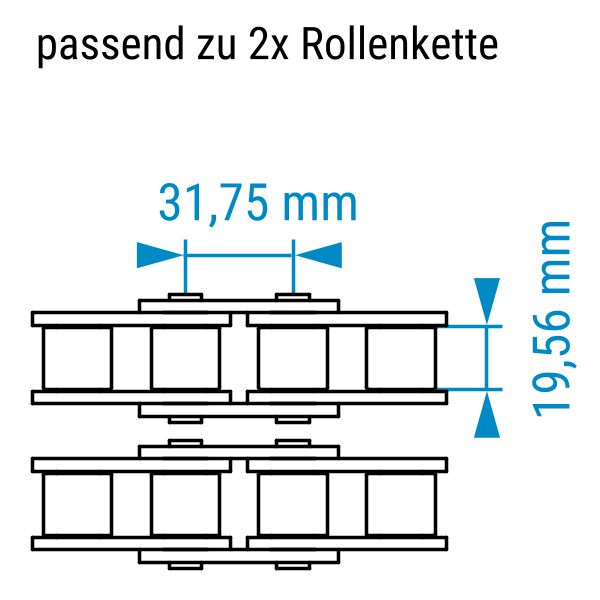 Doppel-Kettenradscheibe 16B-1 / 19 Zähne für zwei Einfach-Rollenketten