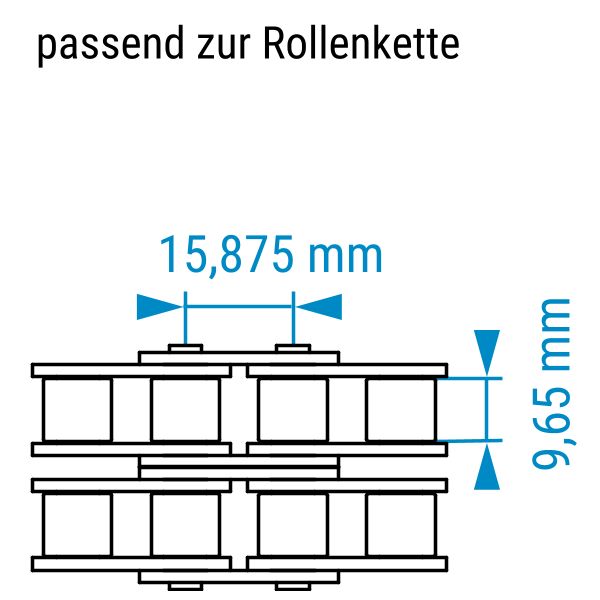 Achten Sie bei Ihrer Bestellung darauf, dass die Profilbezeichnungen von Kette und Kettenrad übereinstimmen.