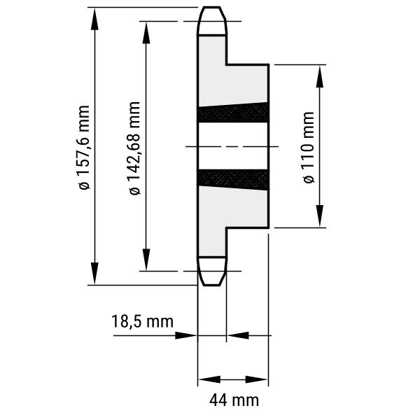 Dieses Kettenrad steht Ihnen auch mit gehärteten Zähnen (HRC 50) zur Auswahl