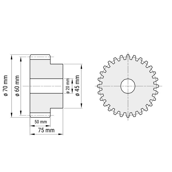 Stirnzahnrad Modul 5 - 12 Zähne, mit Nabe