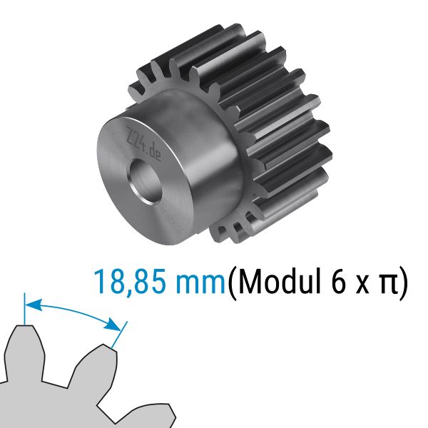 Zahnräder im Modul Modul 6 haben immer eine Teilung von 18,85 mm.