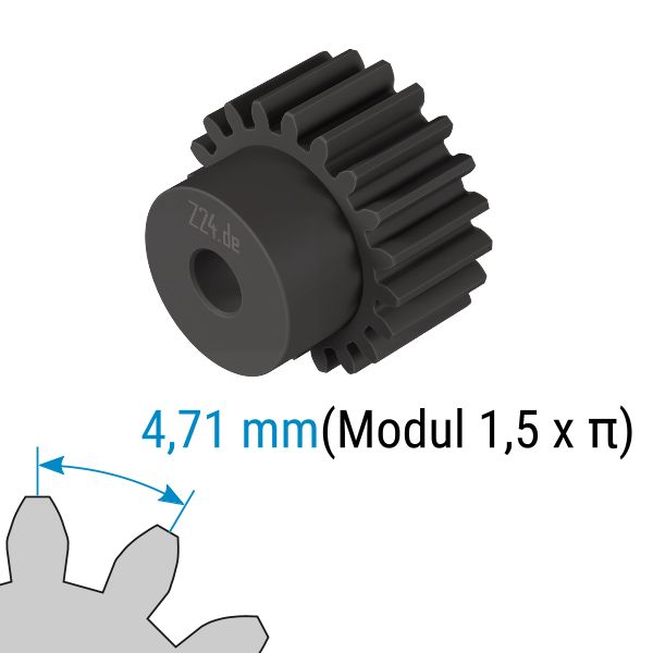 Modul 1,5 | Teilung: 4,71 mm | 53 Zähne | Durchmesser: 82,5 mm | mit Nabe | Kunststoff (PA6) | Vorbohrung: 20 mm (Achtung: Toleranz: 0,5 mm)