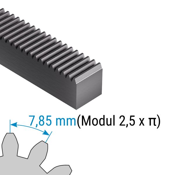 Modul 2,5 | Länge: 500 mm | Breite: 25 mm | Höhe: 25 mm | Stahl C45