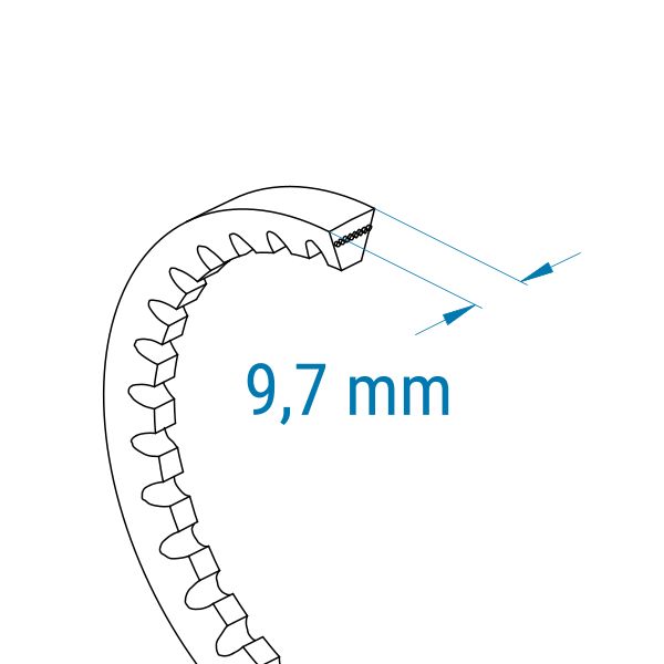 Profil: XPZ | Breite: 9,7 mm | Länge: 630 mm (Lw) | Schmalkeilriemen gezahnt DIN 7753/ISO 4184, Höhe-Breiten-Verhältnis 1 : 1,2, schwarz aus Neopren, nicht Rückenspannrollen geeignet für Leistungsantriebe.