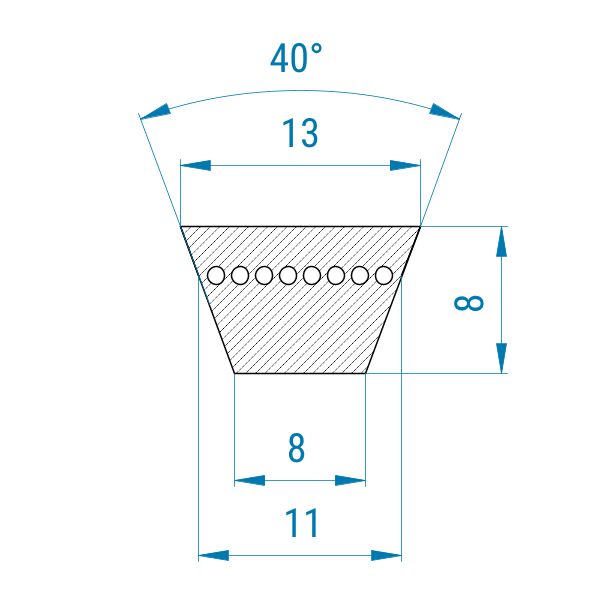 Profil: 13 | Breite: 13 mm | Länge: 700 mm (Li) | Klassischer Keilriemen glatt 2215/ISO 4184, Höhe-Breiten-Verhältnis 1 : 1,6, schwarz aus Neopren für Leistungsantriebe.