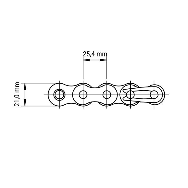 Teilung 25,4 mm von Bolzen zu Bolzen und Rollenbreite 17,02 mm.