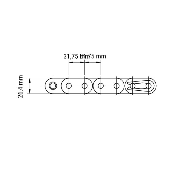 Teilung 31,75 mm von Bolzen zu Bolzen und Rollenbreite 19,56 mm.