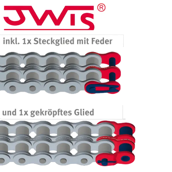 JWIS Rollenkette 12B-2 (D 127) / inkl. Steckglied mit Feder und gekröpftem Glied