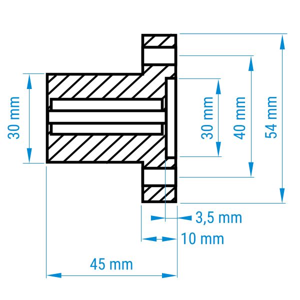Keilnabe KN 18 x 22 (mit Flansch), Rotguss RG7, Länge 45 mm, DIN ISO 14