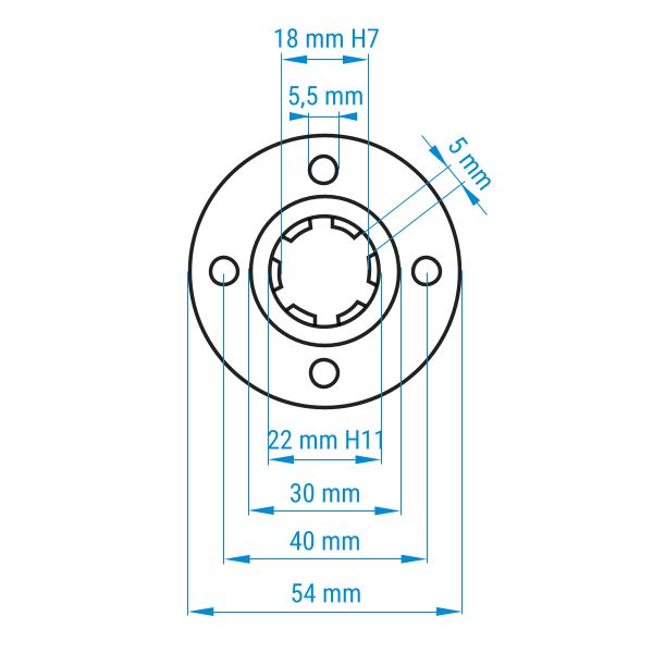 Der Flansch befindet sich an einem Ende des Maschinenelements. Es handelt sich dabei um einen Außenring mit Bohrlöchern, der zur einfachen Montage dient.