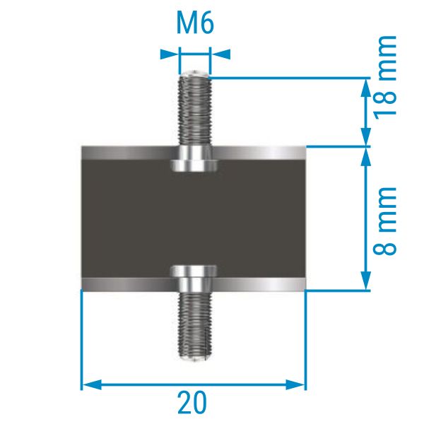 Metall-Gummipuffer TYP 1 (A), ø 20 mm, Höhe 8 mm, beidseitiges Außengewinde M6