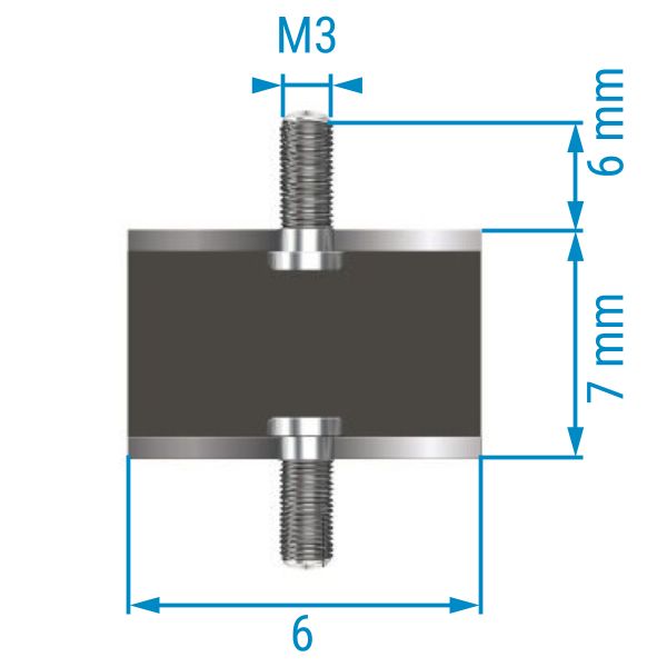 Metall-Gummipuffer TYP 1 (A), ø 6 mm, Höhe 7 mm, beidseitiges Außengewinde M3