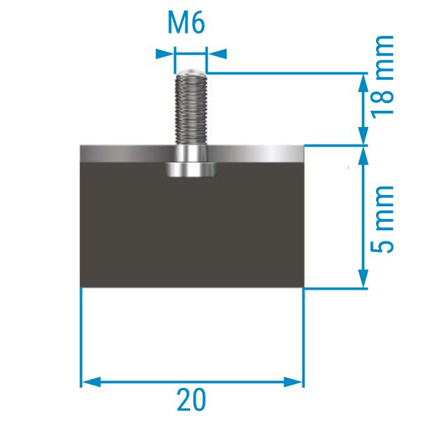 Metall-Gummipuffer TYP 4 (D), ø 20 mm, Höhe 5 mm, einseitiges Außengewinde M6