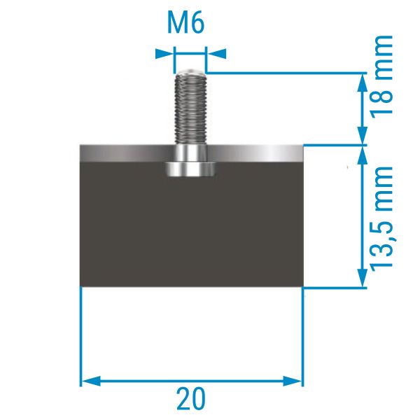 Metall-Gummipuffer TYP 4 (D), ø 20 mm, Höhe 13,5 mm, einseitiges Außengewinde M6