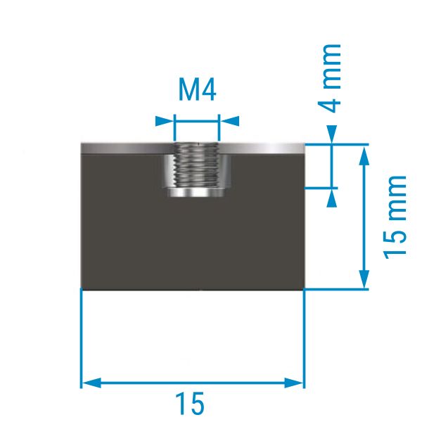 Metall-Gummipuffer TYP 5 (E), ø 15 mm, Höhe 15 mm, einseitiges Innengewinde M4