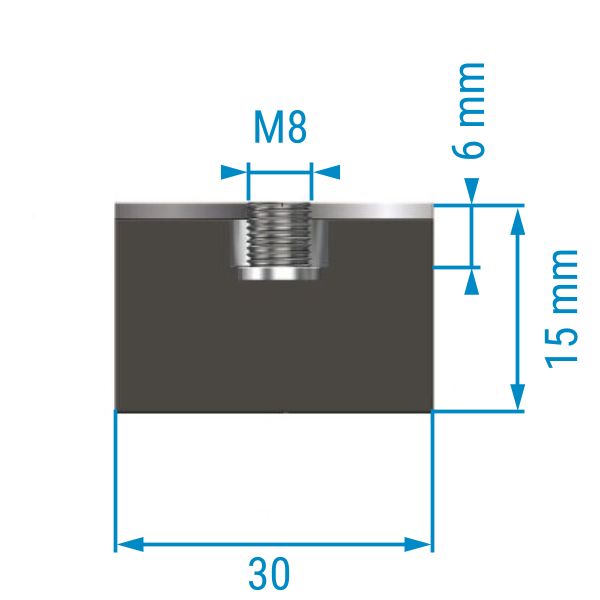 Metall-Gummipuffer TYP 5 (E), ø 30 mm, Höhe 15 mm, einseitiges Innengewinde M8