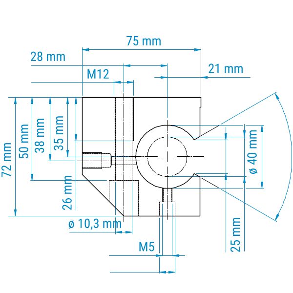 Die Öffnung für unterstützte Wellen ist hier um 90 ° versetzt.