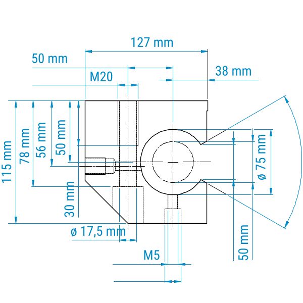 Die Öffnung für unterstützte Wellen ist hier um 90 ° versetzt.