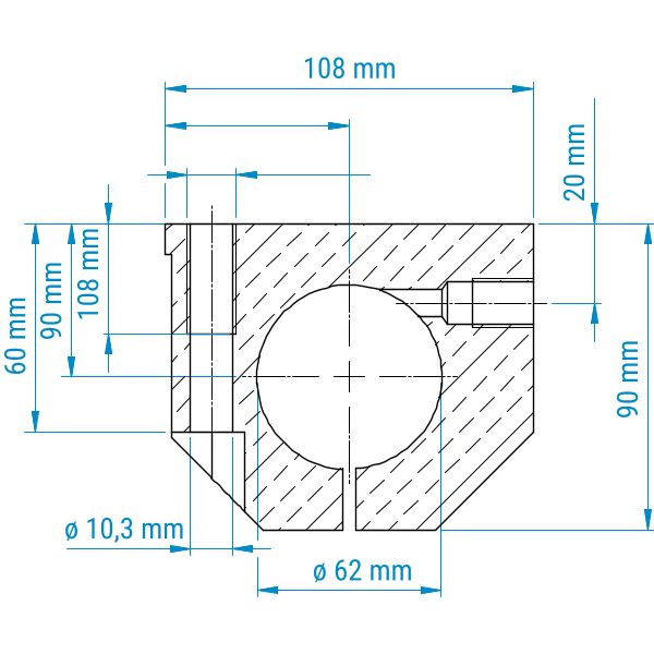mit 2 Bohrungen zur Befestigung der Anschlusskonstruktion.