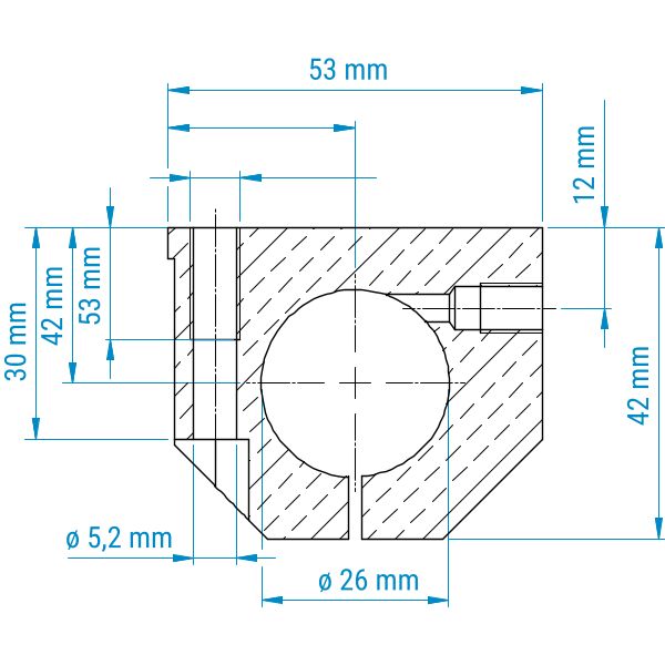 mit 2 Bohrungen zur Befestigung der Anschlusskonstruktion.