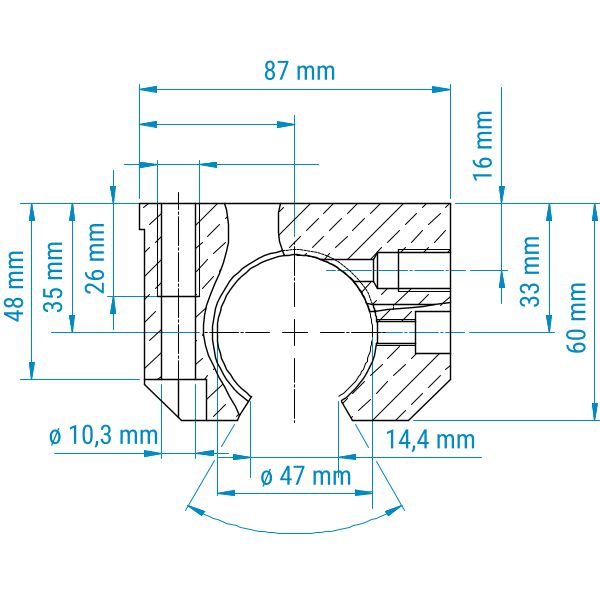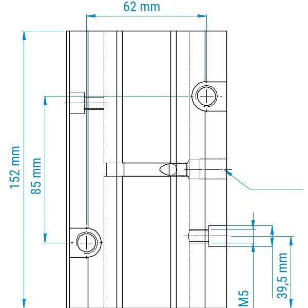 mit 2 Bohrungen zur Befestigung der Anschlusskonstruktion.