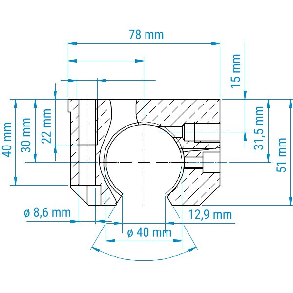 mit 2 Bohrungen zur Befestigung der Anschlusskonstruktion.