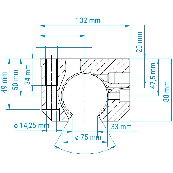 mit 2 Bohrungen zur Befestigung der Anschlusskonstruktion.