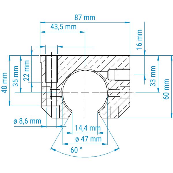 mit 2 Bohrungen zur Befestigung der Anschlusskonstruktion.