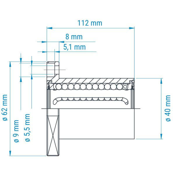 Das Außenmaß bezeichnet den äußeren Durchmesser des Lagers und entspricht dem Innendurchmesser des Lineargehäuses.