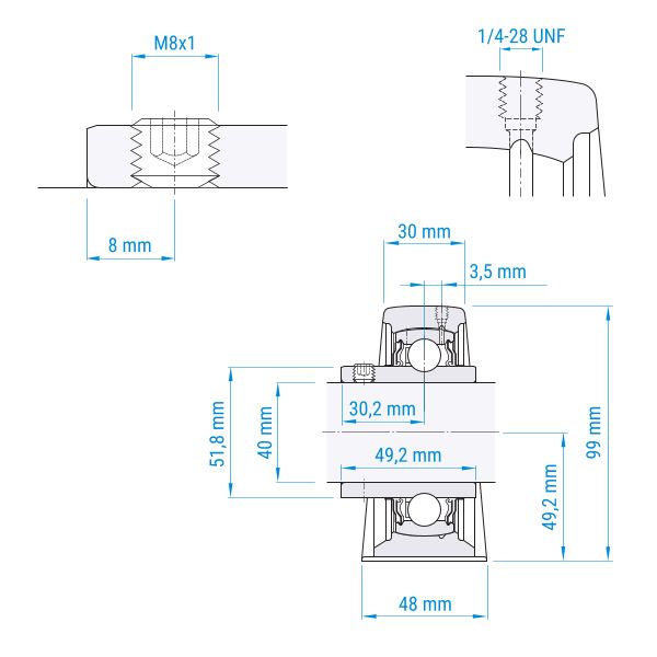 Der Innenring ist nur auf einer Seite verlängert. Dies reduziert Platzbedarf und Materialeinsatz.