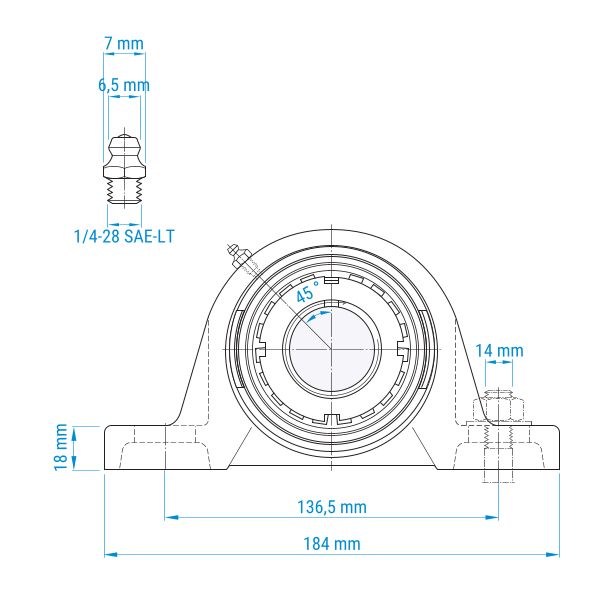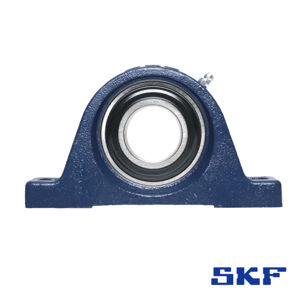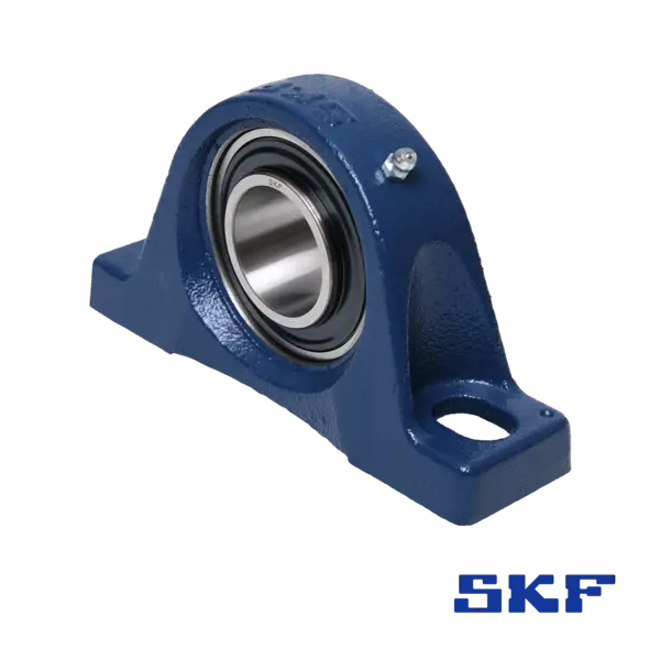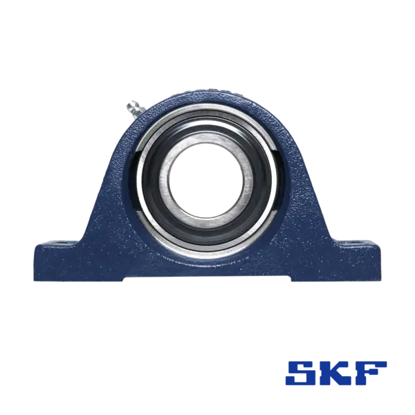 SKF SYJ-Stehlagereinheit nach japanischer JIS-Norm in robuster Ausführung mit langem Fuß. Geeignet für stabile festverschraubte Montagen.