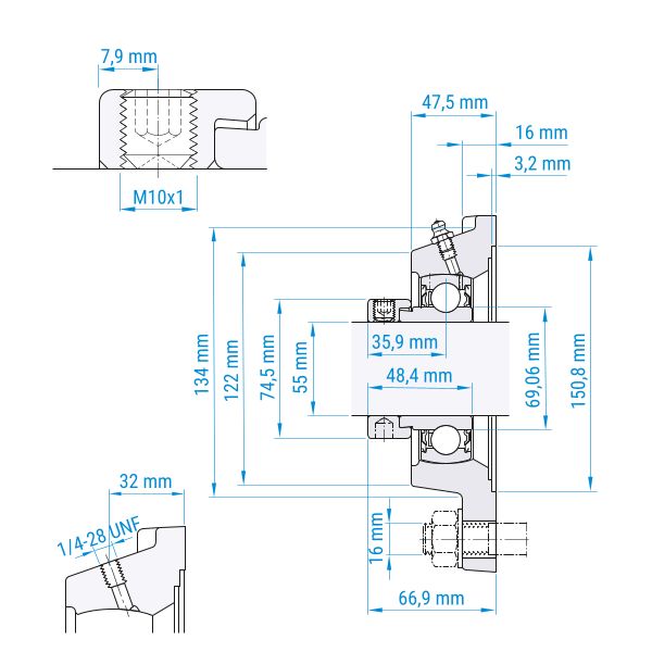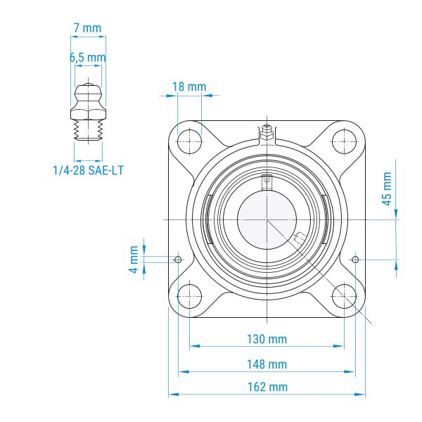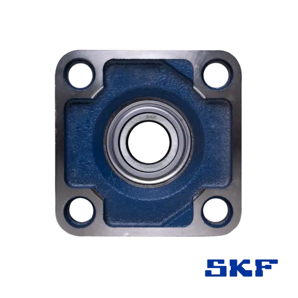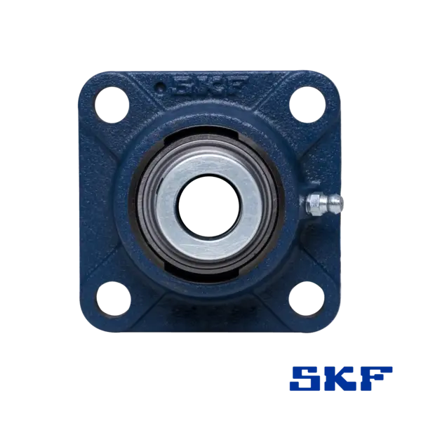 Die SKF FY Vierkantflanscheinheit ist eine Spannlagereinheit mit quadratischem Flanschgehäuse aus Grauguss und einem abgedichteten Y-Lager. Die quadratische Grundform ermöglicht eine zentrierte Montage auf ebenen Flächen. Im Gehäuse ist ein vormontiertes Spannlager mit sphärischem Außenring eingesetzt.