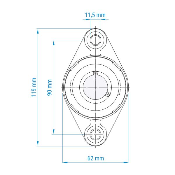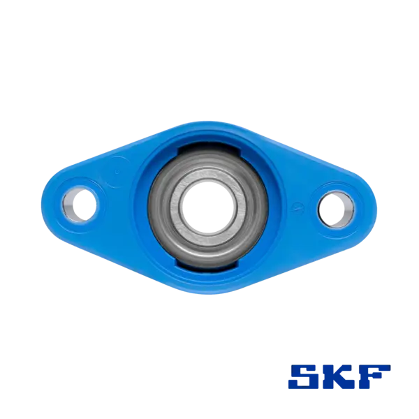 Das Gehäuse aus SKF Food Line Verbundstoff verfügt über eine glatte, abgerundete Oberfläche und reduziert zuverlässig das Anhaften von Rückständen. Verlängerte Befestigungsbohrungen ermöglichen eine flexible und einfache Montage.