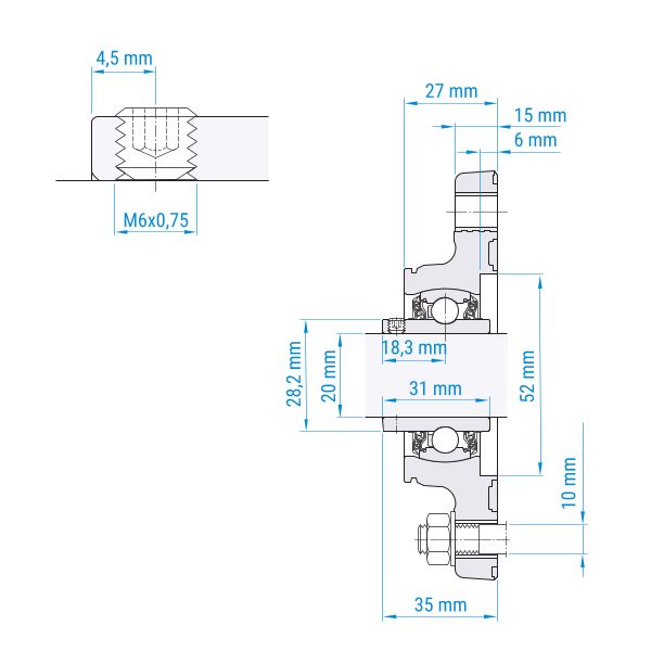Die Lagereinheit ist mit einem vormontierten, vollständig abgedichteten und korrosionsbeständigen Spannlager ausgestattet.